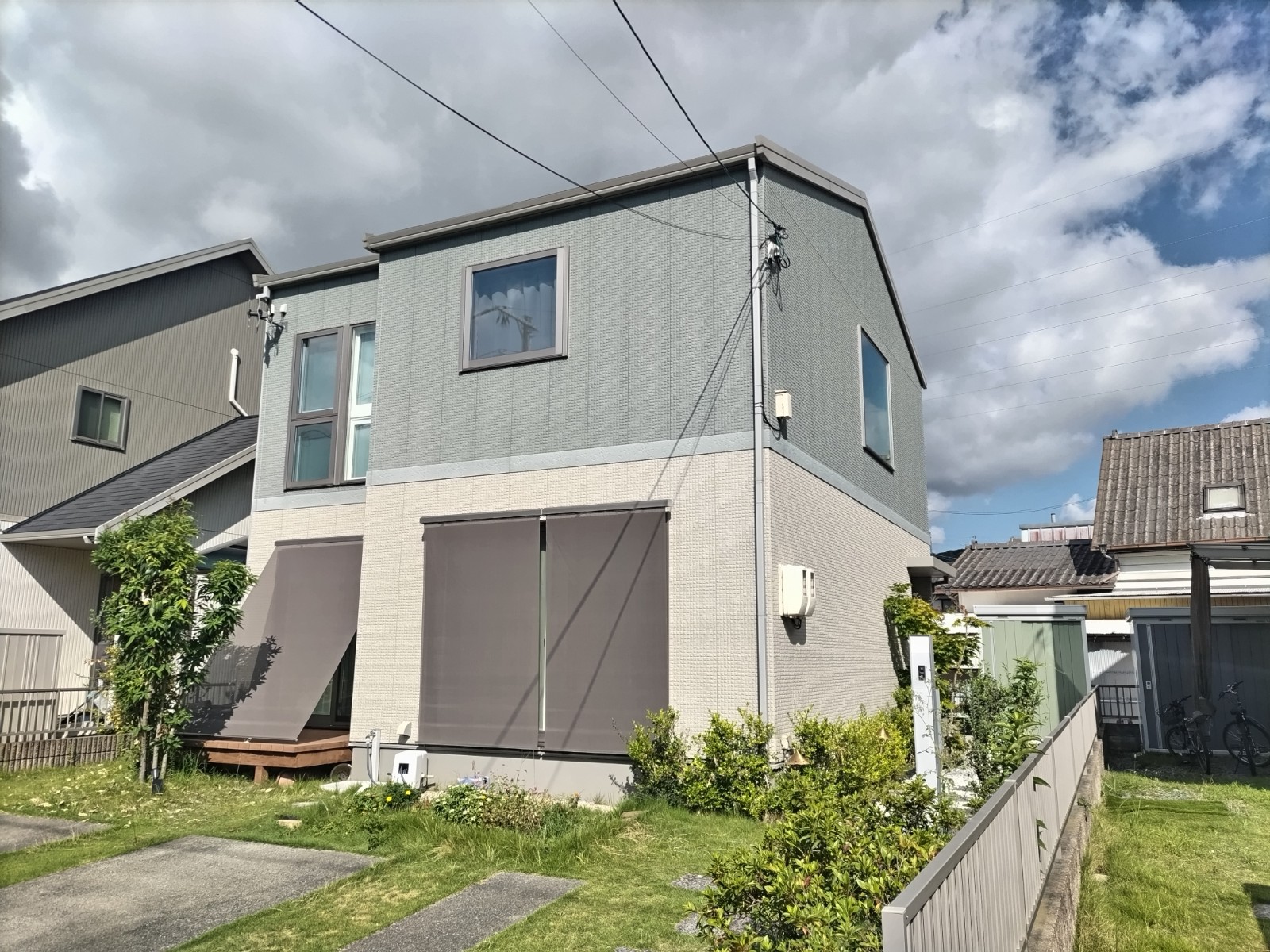 今回は、岡山市中区にお住まいのお客様宅で行った外壁塗装工事の事例をご紹介します。築年数の経過とともに外壁には色褪せや汚れが目立ち、全体的にくすんだ印象となっていました。特に南面や西面では紫外線や雨風の影響を受けやすく、チョーキング(表面の粉化)も確認されたため、塗り替えのご提案をさせていただきました。