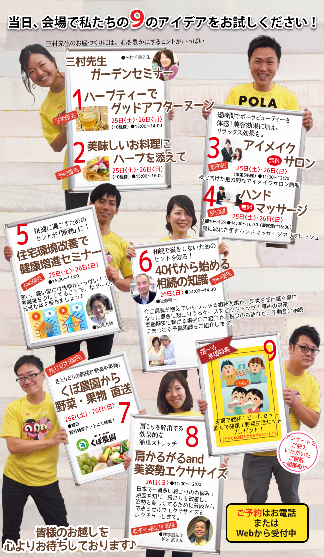 今回のイベントは、住まいと家族に優しい夏アイデアを各種セミナーで大公開!