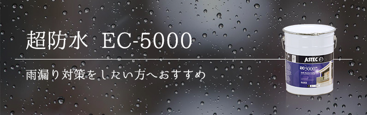 ショールーム来店 無料見積り・相談 電話で見積り・相談 0120-755-526 【受付】9:00~18:00【定休日】火・水曜日 電話で見積り・相談 HOMEおすすめ塗料超防水 EC-5000 超防水 EC-5000 住宅リフォームで最も多い不具合は雨漏りです。外壁のひび割れを放置するとそこから水が浸入し、建物内部の劣化に繋がり建物の劣化、雨漏りを引き起こします。大切な家を長持ちさせたいという思いから誕生した「伸びる塗料」でお家への水の浸入を防ぎます! 超防水 EC-5000の3つの特徴 防水性 遮熱性 耐候性 防水性 超防水塗料とは? 一般的にアクリル樹脂塗料は、耐候性の低い塗料だと認知されています。しかし本来のアクリル樹脂は、透明度が高く、飛行機の窓や水族館の大型水槽に使用されるほど耐久性の高い素材です。アステックペイントでは独自の技術により、住宅への水の浸入を防ぐ超防水塗料を完成させました。 600%の伸縮率で水の侵入を防ぐ 一般的な塗料の場合、外壁にヒビが入ると塗膜も一緒に裂け、雨が降ると建物内に水が浸入してしまいます。それに対し、超防水 EC-5000シリーズのような超防水塗料は、600%の圧倒的な伸縮率で塗膜が追従し、建物内への水の侵入を防ぐことができます。 可塑剤を含まないから長期に渡って伸縮性を保持 一般的な弾性塗料は、塗膜を柔らかくするため、樹脂に「可塑剤」という成分が含まれていますが、3~5年で気化して弾性を失ってしまいます。対して超防水塗料は、樹脂そのものが弾性をもつため、長期にわたって伸縮性を保持することができるのです。 遮熱性 優れた遮熱性により近赤外線を効果的に反射し、室内温度の上昇を抑える 特殊遮熱無機顔料の使用により、温度上昇の主要因となる近赤外線を効果的に反射する塗膜を形成。室内温度の上昇を抑え、生活環境を快適にします。 ※EC-5000PCM-IRのみ 耐候性 期待耐用年数15年以上 促進耐候性試験(スーパーUV)600時間(15年以上)をクリアしました。フッ素樹脂塗料と同等の耐候性を持ち、塗り替え後の光沢を長期間保持します。 樹脂が大きく紫外線に強い 一般的なアクリル樹脂と比べると、約50~100倍の大きさを誇ります。そのため、紫外線により破壊される樹脂破壊ポイントが少なくなり、高い耐候性を保持することができます。 有機ガラス配合でさらなる耐候性を実現 有機ガラス成分(ポリカーボネート樹脂:電気製品や自動車など多くの工業製品に使用)をブレンドし、さらに耐候性を高めています。 おすすめ塗料一覧に戻る ベストホームについて 会社案内 選ばれる理由 アクセスマップ スタッフ紹介 来店ショールーム 受賞歴紹介 採用情報 施工事例 施工事例一覧 塗料別 シリコン塗料 超低汚染塗料 フッ素塗料 遮熱塗料 超防水塗料 その他 色別 白・クリーム色 濃色 淡色 ハウスメーカー別 ダイワハウス ミサワホーム セキスイハウス パナホーム その他 壁の種類別 モルタル 窯業系サイディング ALCパネル お客様の声 お客様の声一覧 お役立ち情報 外壁屋根診断 雨漏り診断 イベント・チラシ情報 おすすめ塗料 LINE相談 外壁塗装の流れ ブログ 一覧 外壁塗装コラム お問い合わせ お問い合わせ 無料お見積もり 資料請求 TOPに戻る ホーム 弊社について 会社案内 選ばれる理由アクセスマップスタッフ紹介来店ショールーム受賞歴紹介採用情報 施工事例 施工事例一覧 お客様の声 お客様の声一覧 よくある質問 お役立ち情報 外壁屋根診断雨漏り診断イベント・チラシ情報おすすめ塗料LINE相談外壁塗装の流れブログ 一覧外壁塗装コラム お問い合わせ お問い合わせ無料お見積もり資料請求