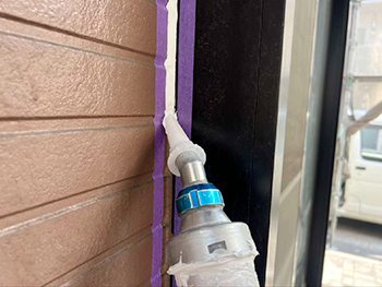 窓回りのシーリングは、既存のシーリングの上にシーリング材を重ね打ちする「増し打ち」を行います。