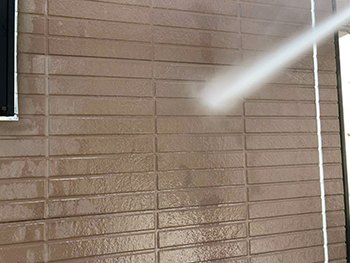 高圧洗浄を行うことで汚れや古い塗膜を洗い落としていきます。