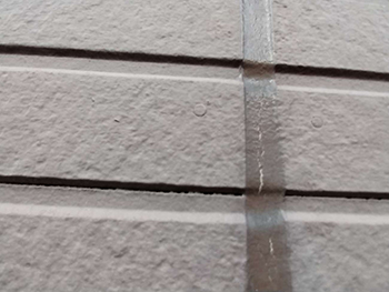 目地部分のシーリングが経年劣化によって硬化し、ひび割れが発生しています。