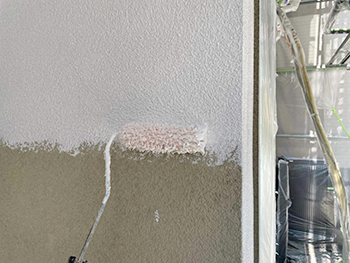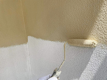 外壁には「フィラー」という粘性の高い下塗り材を使用することで、外壁の凹凸を滑らかにします。そうすることで、上塗り塗料が外壁全体に行き渡りやすくなり、塗膜の厚みのばらつきが軽減されます。