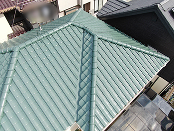 セメント瓦の素地の色が目立っていた屋根もきれいな緑色に仕上がりました!
