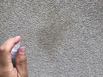 霧吹きで水を掛けると表面から水が染み込んでいきました。ボードの防水性能が低下している状態です。