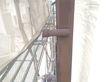 こちらは上塗り塗装(上塗り塗料2回目塗布)の様子です。重ね塗りを行い、塗膜の厚みを均等にしていきます。