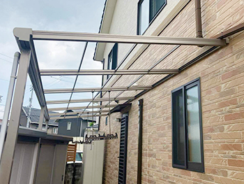 足場を立てるため、テラス屋根のパネルを外します。