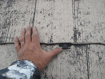 誘発目地部分にひび割れが発生しています。