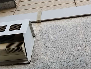 シーリングは既存のシーリングを撤去し、新しいシーリングを充填する「打ち替え」を行います。写真は、既存のシーリングを撤去している様子です。