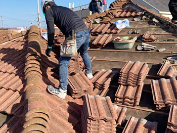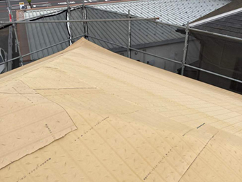 屋根葺き替えの施工の様子です。既存の屋根材を撤去します。