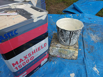 塗料は、主材と硬化剤を混ぜて使用する「2液型」というタイプです。塗料を使用する際には秤を使用して主材と硬化剤の割合を計測し、希釈量を遵守しています。