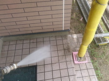 コーキング改修後に養生期間を設けた後に洗浄作業スタートです