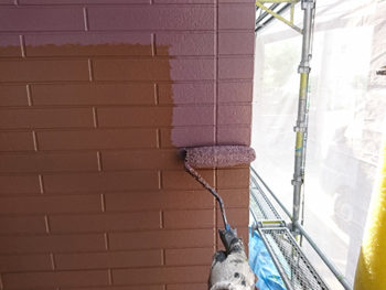 中塗り状況です、ローラー手塗りにて進めます